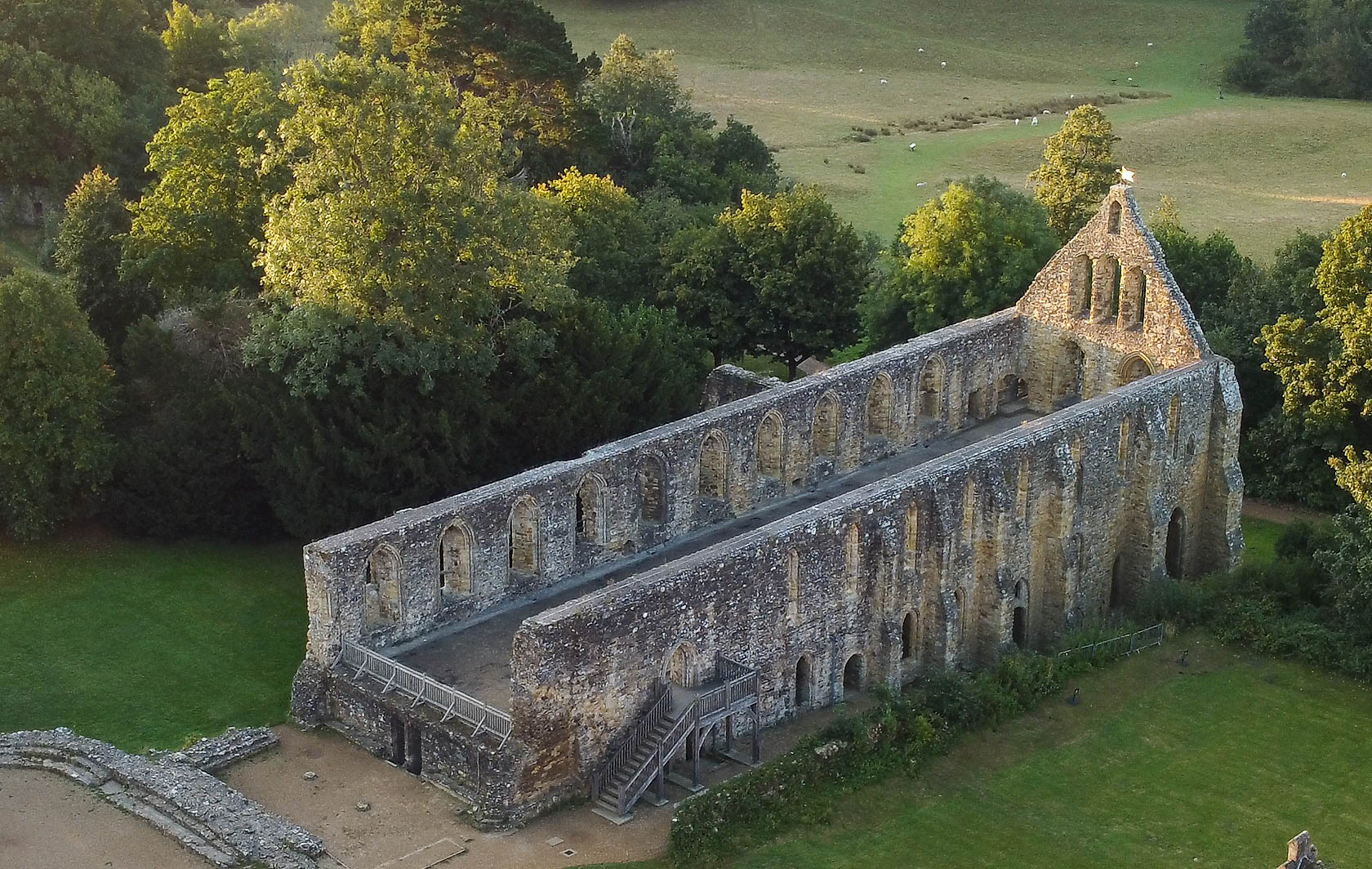 battle abbey ruins drone view