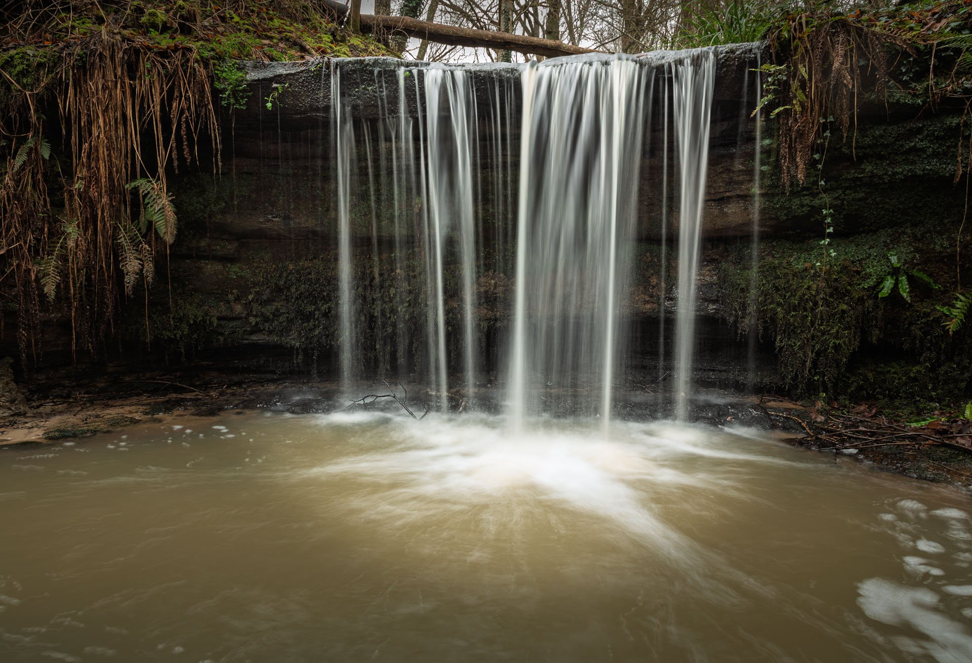 A compact, rainfall-dependent woodland waterfall in a secluded ravine near Crowhurst, East Sussex. Sheltered by steep banks and mossy rock, it can feel noticeably milder down here than the surrounding woodland, especially on colder days.