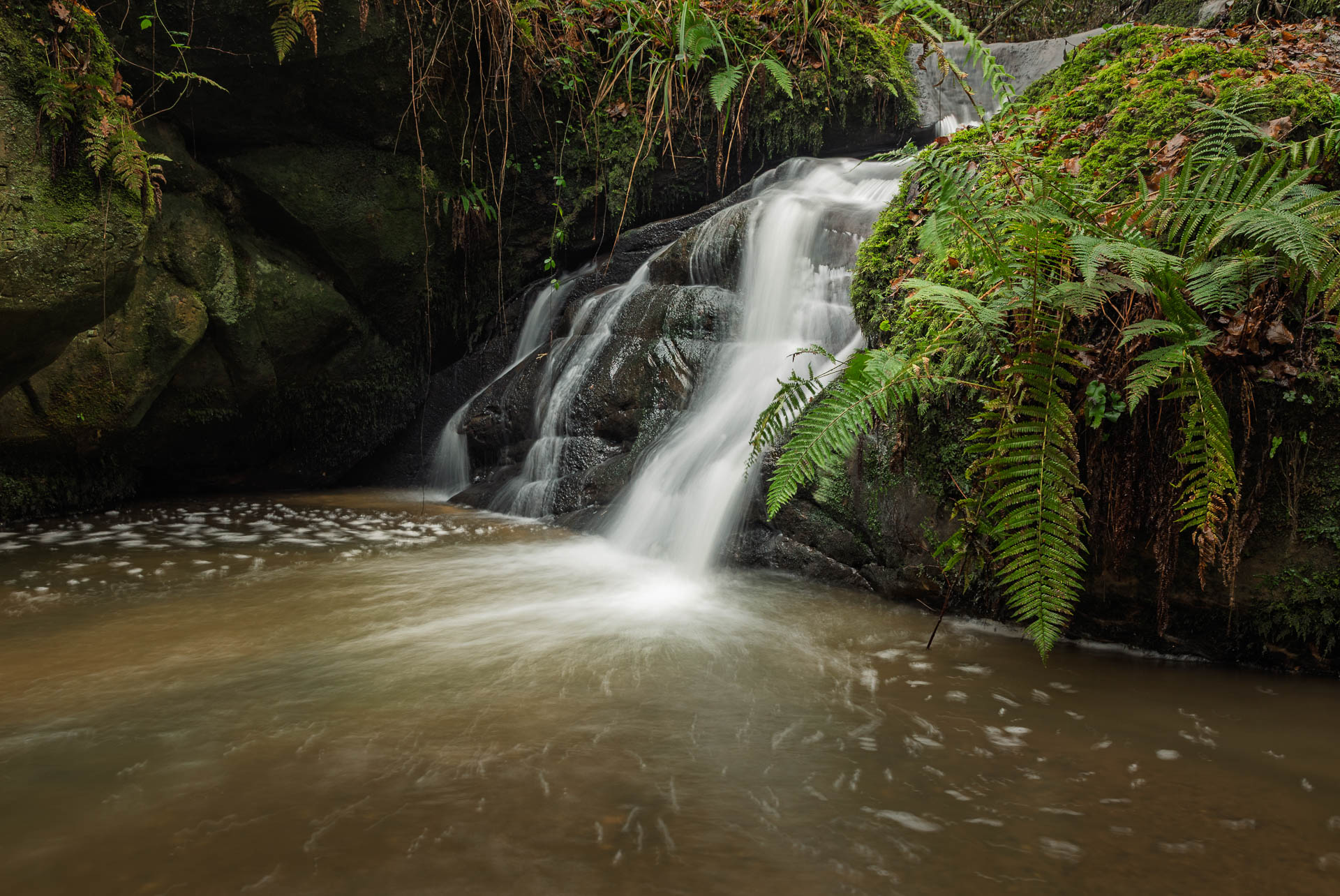 A little-known woodland waterfall hidden in a steep ravine in the Marline Valley near Hastings. The waterfall only flows properly after sustained rainfall and is easily missed due to its secluded setting away from main paths.